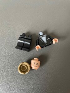Die Figur (sc102) hat einen coolen Smoking der aus zwei neuen Teilen Tuxedo Jacket (Part ID: 973pb4837c01) und Tuxedo Coattails (Part ID 970c00pb1417) besteht.
