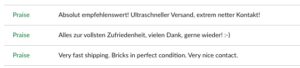 Fazit: Das ist meine lange Herleitung zur Beantwortung der Frage ob ich dem Kunden einen Mehrwert biete. Ich glaube fest daran, dass es Kunden gibt, die ich mit meiner Einstellung zur Arbeit von meinem Bricklinkshop überzeugen konnte. Ja ich biete Mehrwerte.