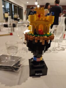 Den Abschluss des Abends bildete die Preisverleihung. In vier Kategorien (Beste Geschichte, Beste Funktion, Bester Einsatz eines Teils und Gesamtheitlich Bestes Set) wurden jeweils 3 Sets nominiert und ein Sieger gekürt. Besonders toll war, dass es diesmal eine zusätzliche Kategorie (Beste Lernkurve) für alle Teilnehmer gab, die eigentlich nichts mit Lego zu tun haben (und ihren Ehemännern zuliebe mitgefahren sind) und teilweise richtig Bammel vor dem Bauwettbewerb hatten.