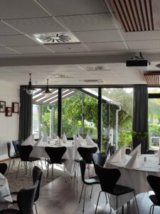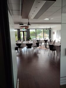 Nach unserer Erkundungstour finden wir uns in einem abgegrenzten Bereich der Kantine wieder wo uns Tim Brooks (VP Sustainability) einen Vortrag über Lego’s Nachhaltigkeits-Prinzipien und Bemühungen um CO2 Neutralität näherbringt.