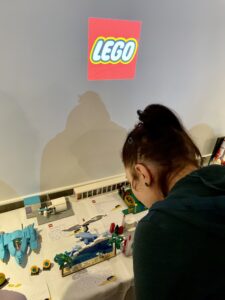 Mit einem Kaffee in der Hand erkunden Johanna und ich nach dem Mittag das Erdgeschoß. Es gefällt mir, dass wir uns frei bewegen dürfen, so haben wir genug Zeit die ganzen, teilweise gut versteckten, Lego Modelle zu finden, die überall im und außerhalb des Gebäude aufgestellt sind.