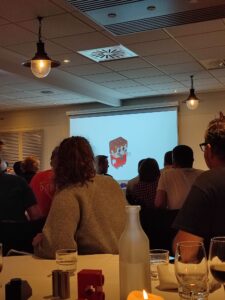 Nach dem Essen haben sich 5 Freiwillige einem Test gestellt, indem die (teilweise absurden) Namen von Einzelteilen gewusst/geraten werden mussten. Der Kniff war, dass es sich nicht um die bekannten Bricklink Namen handelt, sondern um die original Lego Namen von denen ich die meisten noch nie in meinem Leben gehört hatte.